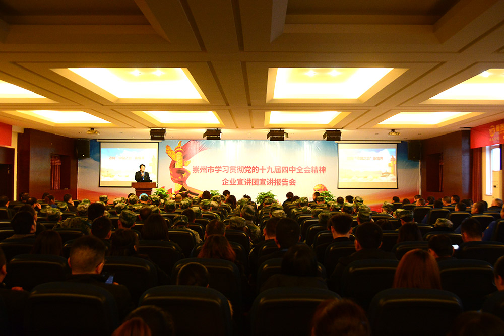 在全市上下深入開(kāi)展學(xué)習(xí)宣傳貫徹黨的十九屆四中全會(huì)精神之際,12月16日下午,根據(jù)市委統(tǒng)一安排,崇州市學(xué)習(xí)貫徹黨的十九屆四中全會(huì)精神企業(yè)宣講報(bào)告會(huì)在康泰集團(tuán)舉行。成都市第十七屆人大代表周云作黨的十九屆四中全會(huì)精神宣講。崇州市相關(guān)單位及經(jīng)開(kāi)區(qū)領(lǐng)導(dǎo)、經(jīng)開(kāi)區(qū)重點(diǎn)企業(yè)黨支部書(shū)記及企業(yè)負(fù)責(zé)人、黨員、預(yù)備黨員等參加了此次宣講會(huì)。