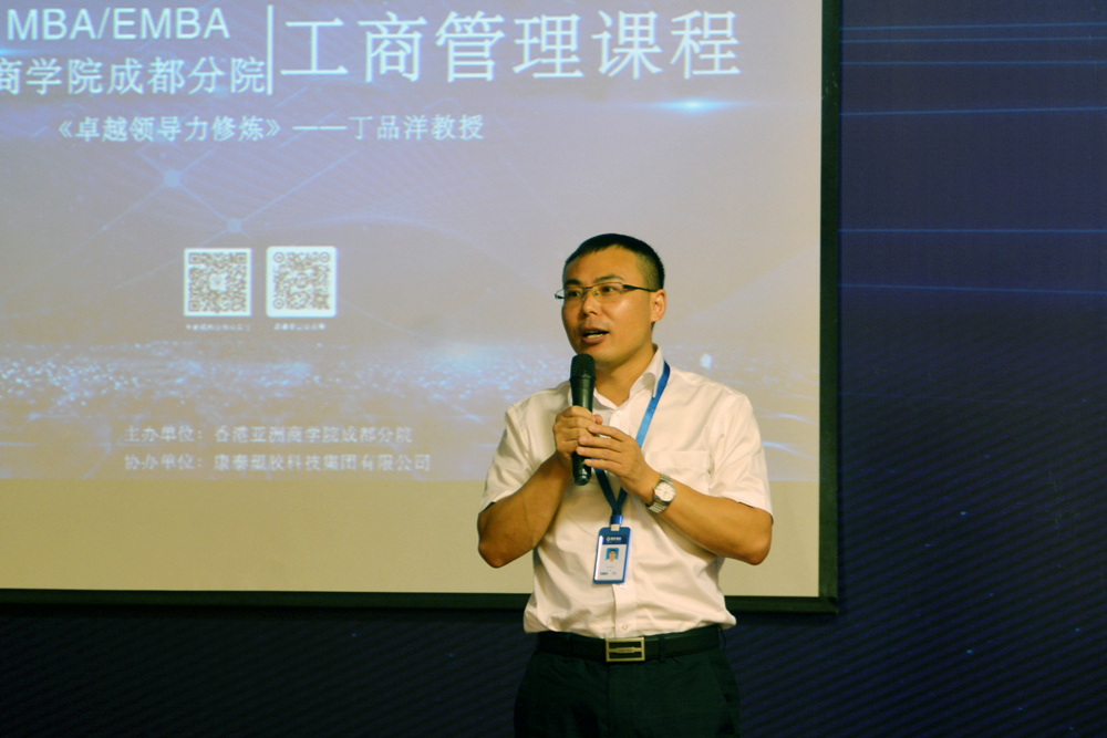 7月19日,康泰塑膠科技集團(tuán)有限公司聯(lián)合香港亞洲商學(xué)院MBA成都分院在康泰集團(tuán)總部五樓多功能廳舉行了為期一天的《卓越領(lǐng)導(dǎo)力修煉》專題培訓(xùn)會議。集團(tuán)董事長兼總裁林云青、副總裁鄭光鏵、張文霖,以及集團(tuán)、成都子公司中高層團(tuán)隊(duì),亞商學(xué)院MBA學(xué)員等共計(jì)100人參加了培訓(xùn)。香港亞洲商學(xué)院(簡稱亞商學(xué)院)教授丁品洋授課。