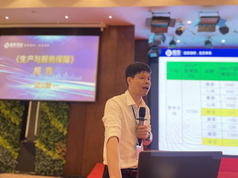 圖為市場推廣部長冉林杰作《康泰集團差異化產(chǎn)品贏銷》匯報