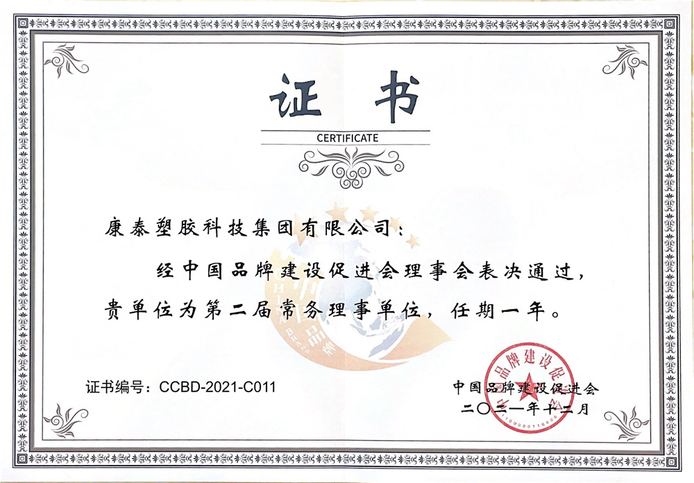 近日,經(jīng)中國品牌建設促進會表決通過,康泰塑膠科技集團當選為常務理事單位,任期一屆(2021-2022)。中國品牌建設促進會是經(jīng)國務院同意、民政部批準的唯一從事品牌工作的全國性社會團體,旨在促進中國品牌建設發(fā)展和提高產(chǎn)品質(zhì)量。