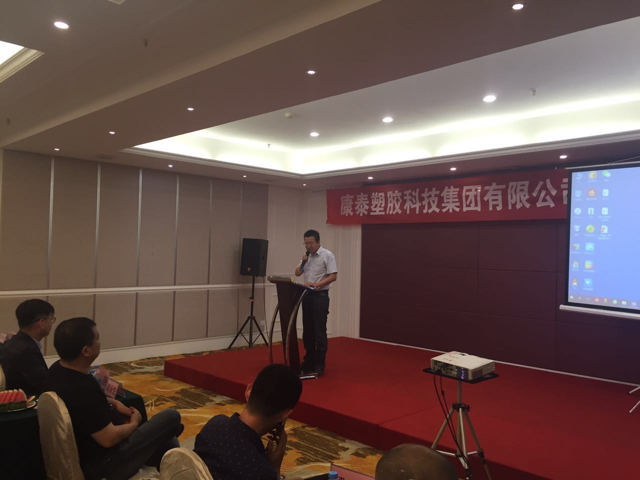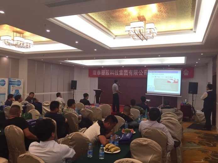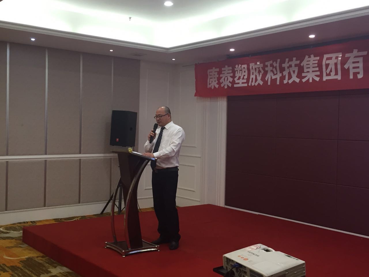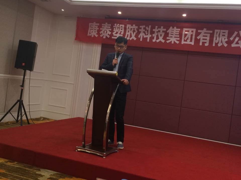 ? ? ? ?會上,康泰塑膠科技集團河南基地生產(chǎn)負責人林化平圍繞康泰的多款新產(chǎn)品的優(yōu)點和特性,從設(shè)計理念、開發(fā)背景、技術(shù)特點、產(chǎn)品原料、生產(chǎn)設(shè)備、性能對比、實驗分析、應用領(lǐng)域、工程案例等方面作了詳細的介紹。河南銷售分公司總經(jīng)理周建峰通過實際案例向各位來賓介紹了康泰集團的品牌價值及產(chǎn)品銷售理念。康泰產(chǎn)品商丘總代理梁輝先生也表達了對于康泰集團的感謝以及對康泰產(chǎn)品和商丘市場的巨大信心。