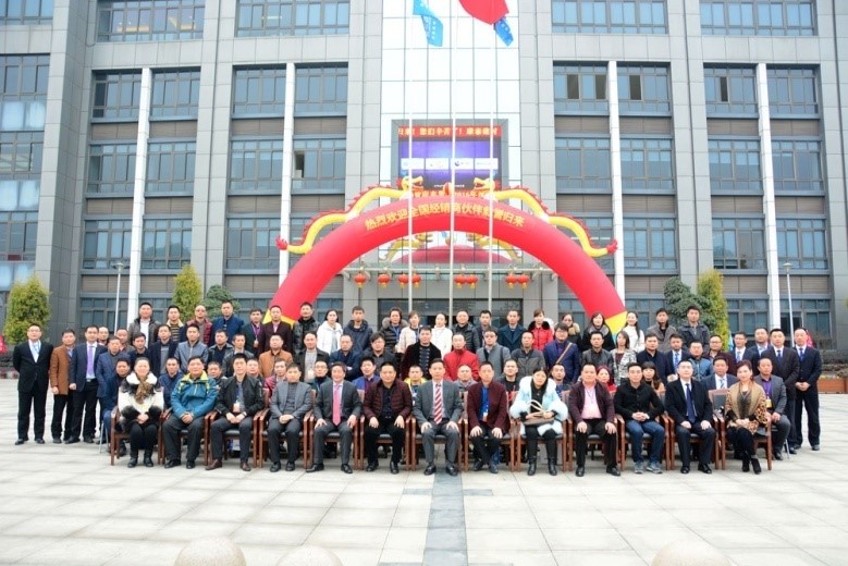 圖為全體經(jīng)銷商與集體領(lǐng)導合影