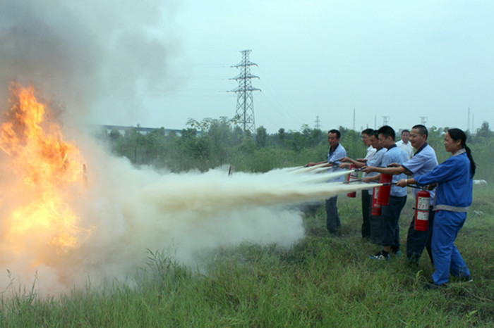 員工在實(shí)戰(zhàn)中學(xué)習(xí)滅火器的使用方法