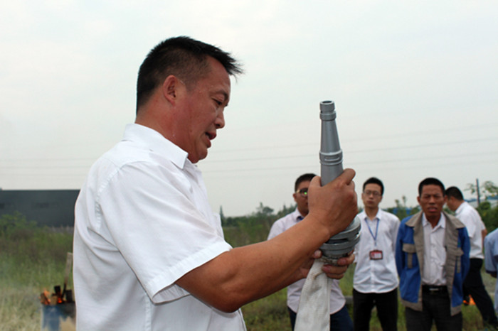 ??? 在B區(qū)空地,總裁辦后勤主管李永富向大家演示滅火器、滅火布、消防水槍、三種滅火工具的使用方法和適用范圍,并作現(xiàn)場演示。參加演練的同事,特別是來自庫房的員工積極參與到每個(gè)實(shí)戰(zhàn)環(huán)節(jié)中去,通過實(shí)踐鞏固掌握消防知識(shí)。