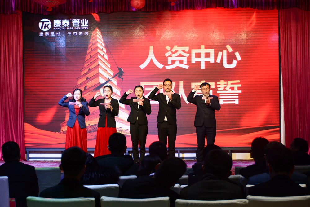 13時(shí)許,會(huì)議在雄壯嘹亮的《國歌》和《康泰之歌》中正式啟幕。大會(huì)共有五項(xiàng)議程分別是,對(duì)2018年的工作總結(jié)暨2019年度經(jīng)營規(guī)劃、表彰2018年度先進(jìn)個(gè)人和集體、舉行迎春文藝匯演、母公司各中心宣誓、聽取董事長對(duì)2019年的總體規(guī)劃和展望。